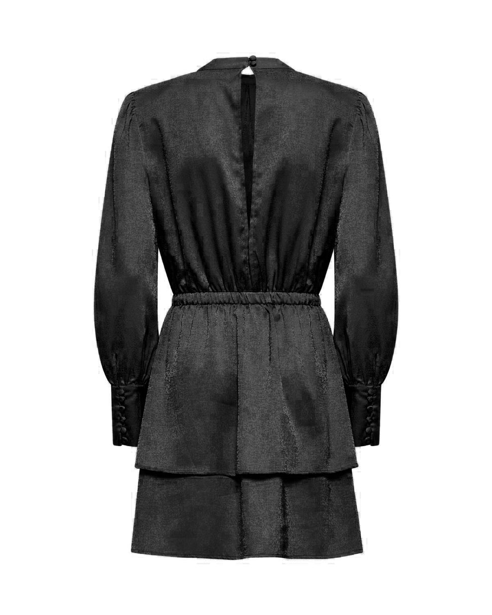 A dress with a soft, feminine fit, featuring a gathered waist that accentuates the silhouette. The scoop neckline and double ruffle at the hem add movement and personality to the look.
