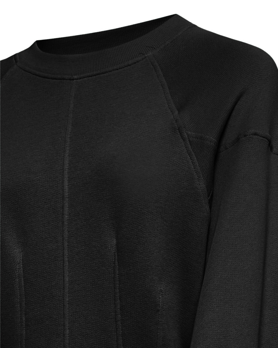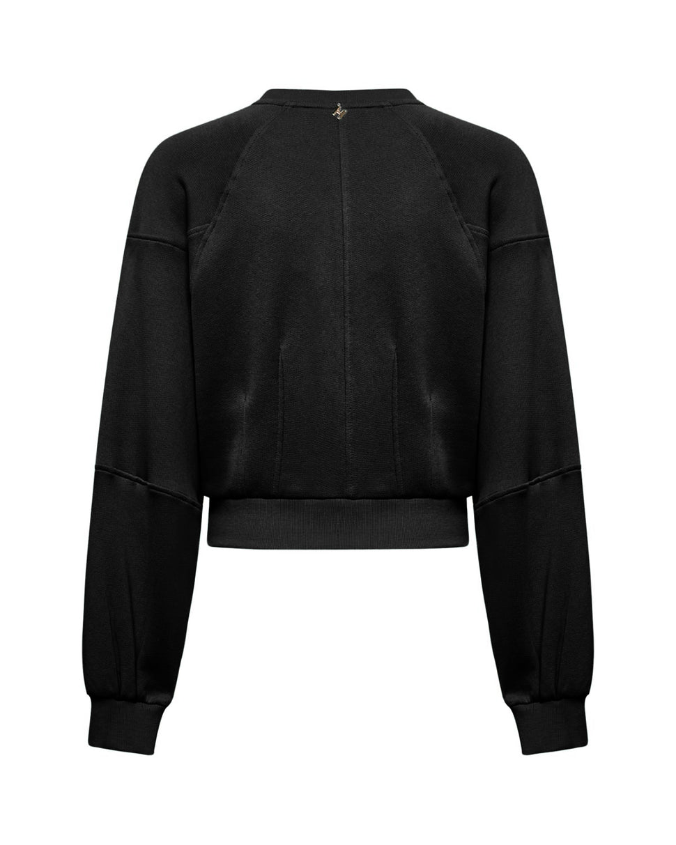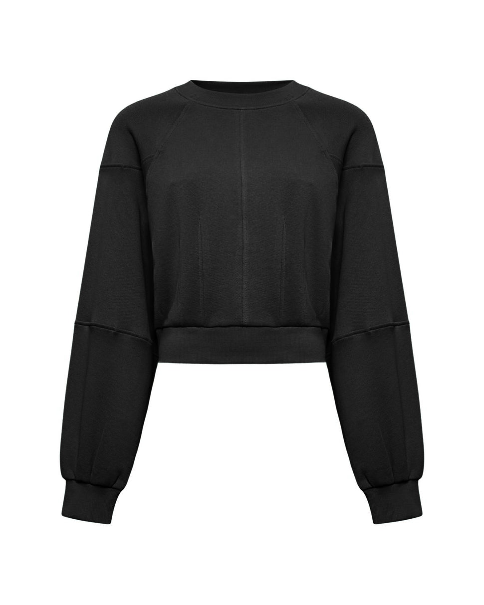 Taglio corto e proporzioni esagerate per una felpa in stile contemporaneo. Le maniche balloon donano volume e personalità al capo.