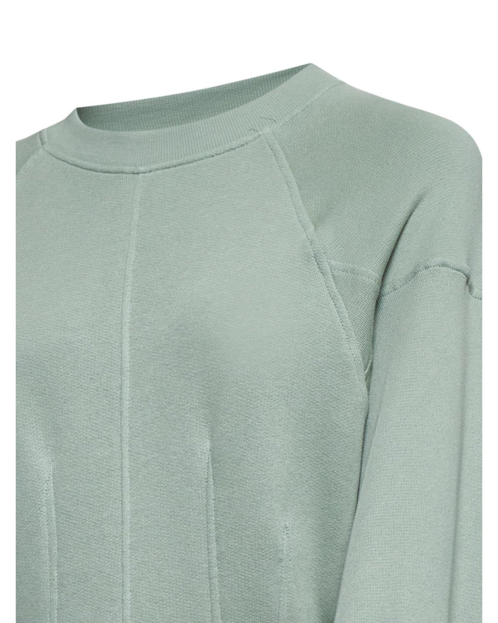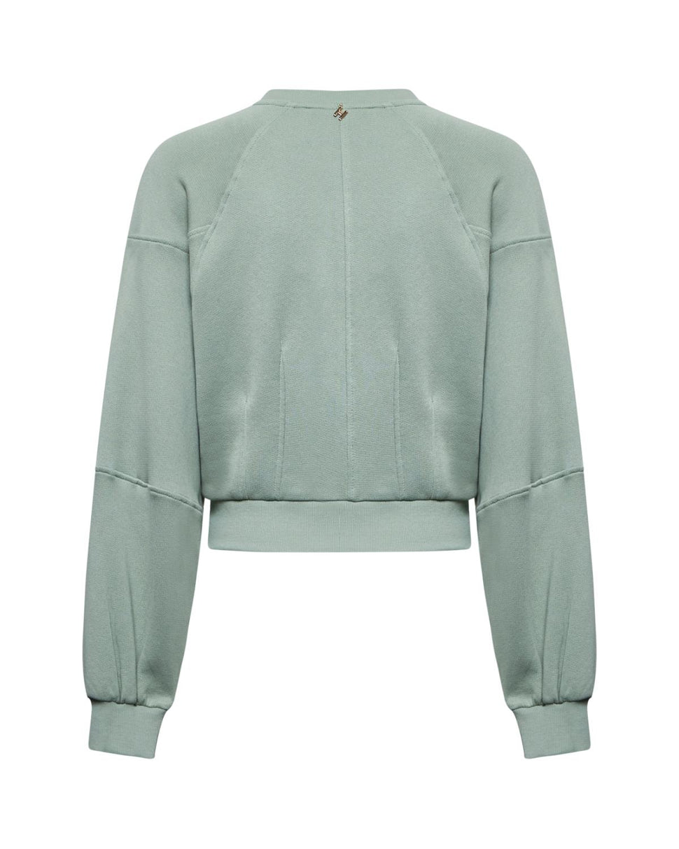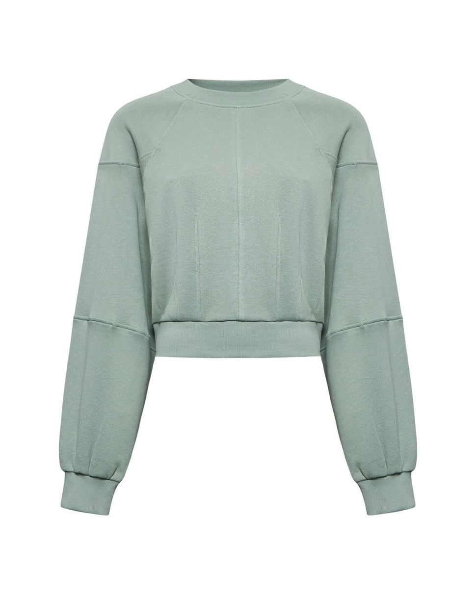 Taglio corto e proporzioni esagerate per una felpa in stile contemporaneo. Le maniche balloon donano volume e personalità al capo.