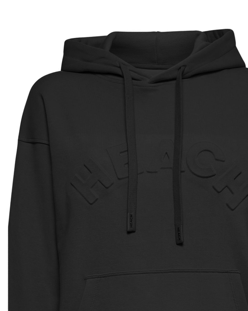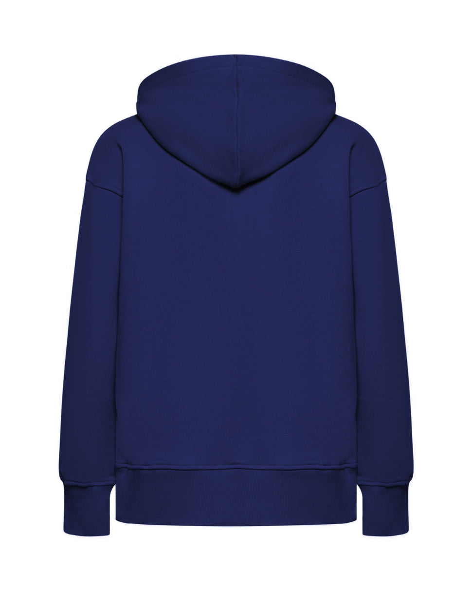 Un capo urban rivisitato con gusto minimal. La felpa con cappuccio è completata dal logo tono su tono in rilievo e una zip frontale parziale.